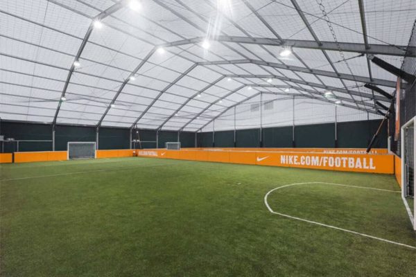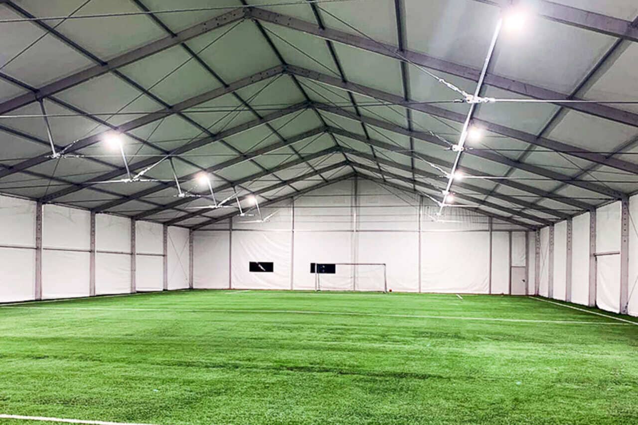 Namiotowe areny piłkarskie buduje się szybciej i taniej niż tradycyjne, stałe budynki. Konstrukcje szkieletowo-namiotowe mogą pokryć boiska o niemal każdej wielkości, tworząc krytą przestrzeń do całorocznych treningów i meczów. Hangary są łatwe w montażu, można je rozbudować, a w razie potrzeby zdemontować i przenieść w inne miejsce.