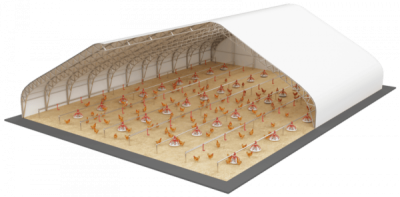 Wytrzymała stalowa rama w połączeniu z wysokiej jakości pokryciem z materiału niezawodnie chroni ptaki przed opadami atmosferycznymi, wiatrem, upałem i zimnem. Wewnątrz kurnika można łatwo zainstalować systemy wentylacji, oświetlenia i ogrzewania, które wspierają zdrowie stada, sprzyjają szybkiemu wzrostowi i przyczyniają się do poprawy ogólnej wydajności.