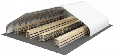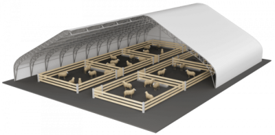 Pokryte tkaniną schroniska dla zwierząt gospodarskich są dostępne w szerokiej gamie standardowych rozmiarów. Typowe szerokości wahają się od 12 do 30 m (około 40–98 stóp) bez podpór wewnętrznych, a wysokości do 7–10 m (około 23–33 stóp). Długość jest praktycznie nieograniczona dzięki modułowej konstrukcji: budynek można rozbudować o dodatkowe przęsła lub zamontować wiele modułów w rzędzie. Ułatwia to skalowanie pojemności pomieszczenia w miarę wzrostu stada.