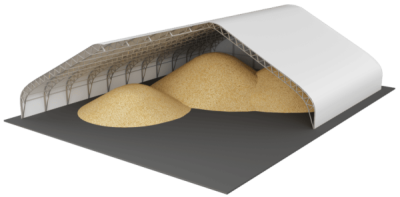 Budynek magazynowy na zboże kryty tkaniną to nowoczesna, modułowa konstrukcja przeznaczona do magazynowania zboża na poziomie gruntu. Zbudowany jest na wytrzymałej, ocynkowanej ramie stalowej z trwałą membraną PVC, która chroni przed deszczem, śniegiem, wiatrem i promieniowaniem UV, jednocześnie utrzymując stabilny klimat wewnątrz, bez kondensacji i nadmiernej wilgoci. Konstrukcja jest odporna na korozję i zaprojektowana z myślą o długiej żywotności, a jej modułowa konstrukcja pozwala na tworzenie magazynów zbożowych o niemal dowolnej wielkości, z opcjami systemów wentylacji, mechanicznego załadunku/rozładunku oraz przegród wewnętrznych do oddzielania różnych partii ziarna – co czyni go wszechstronnym i praktycznym rozwiązaniem dla gospodarstw rolnych.